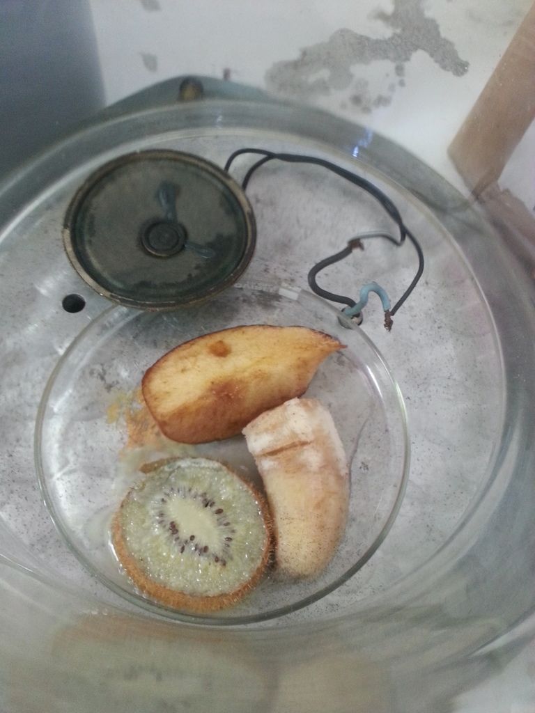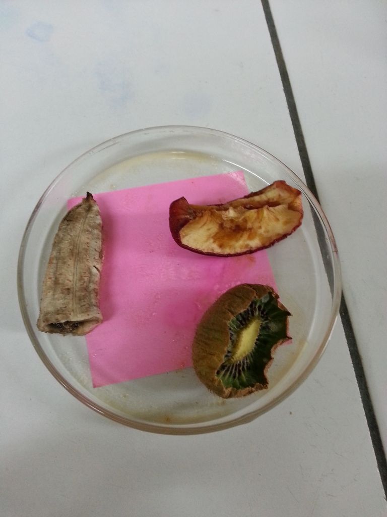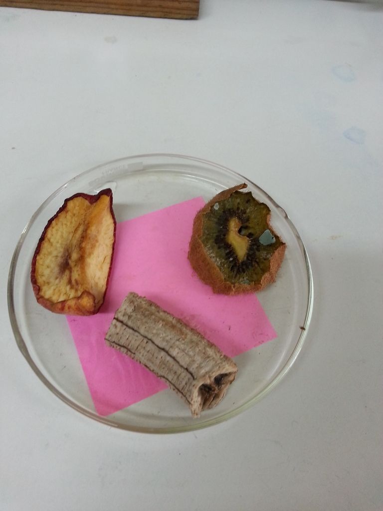 × On remarque que le kiwi se dégrade moins rapidement que les autres fruits quelque soit l’environnement dans lequel ils sont placés. Ils contiendraient peut-être en eux un agent naturel de conservation.