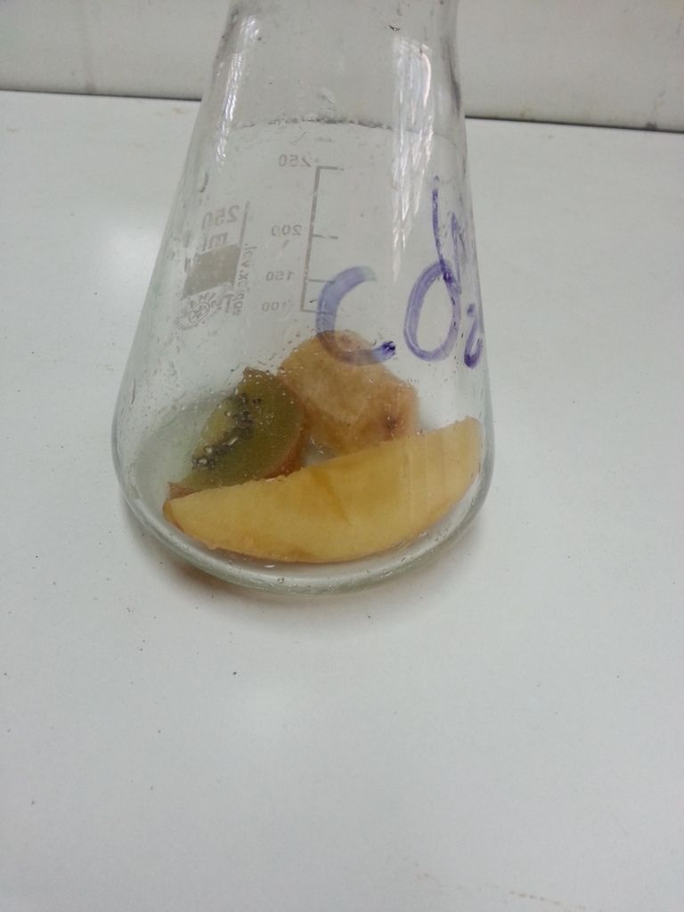 × On observe que les fruits placés à l’air libre et dans le flacon contenant du dioxygène se dégradent rapidement. On peut conclure que le dioxygène présent dans l’air serait un facteur de la dégradation.